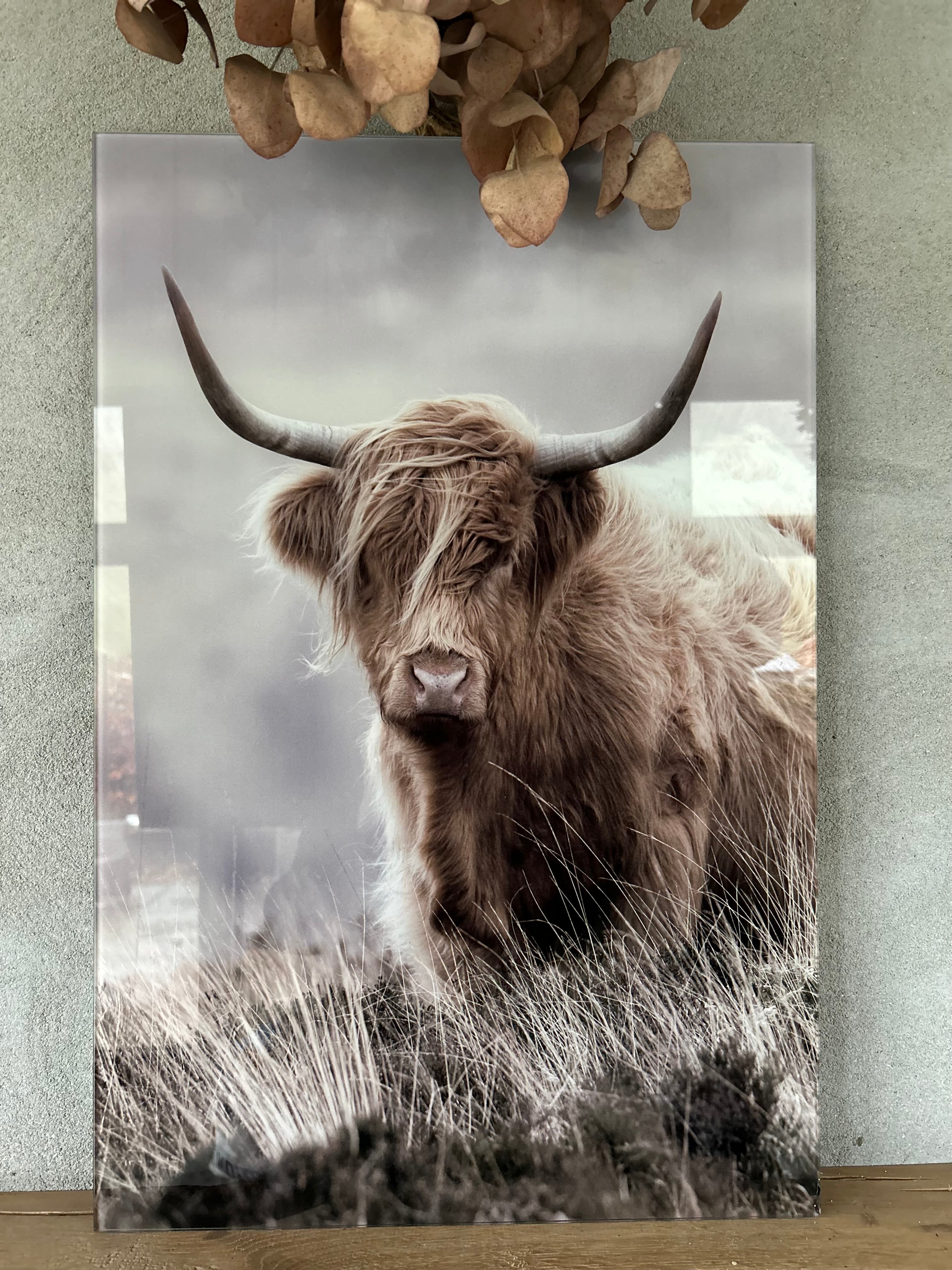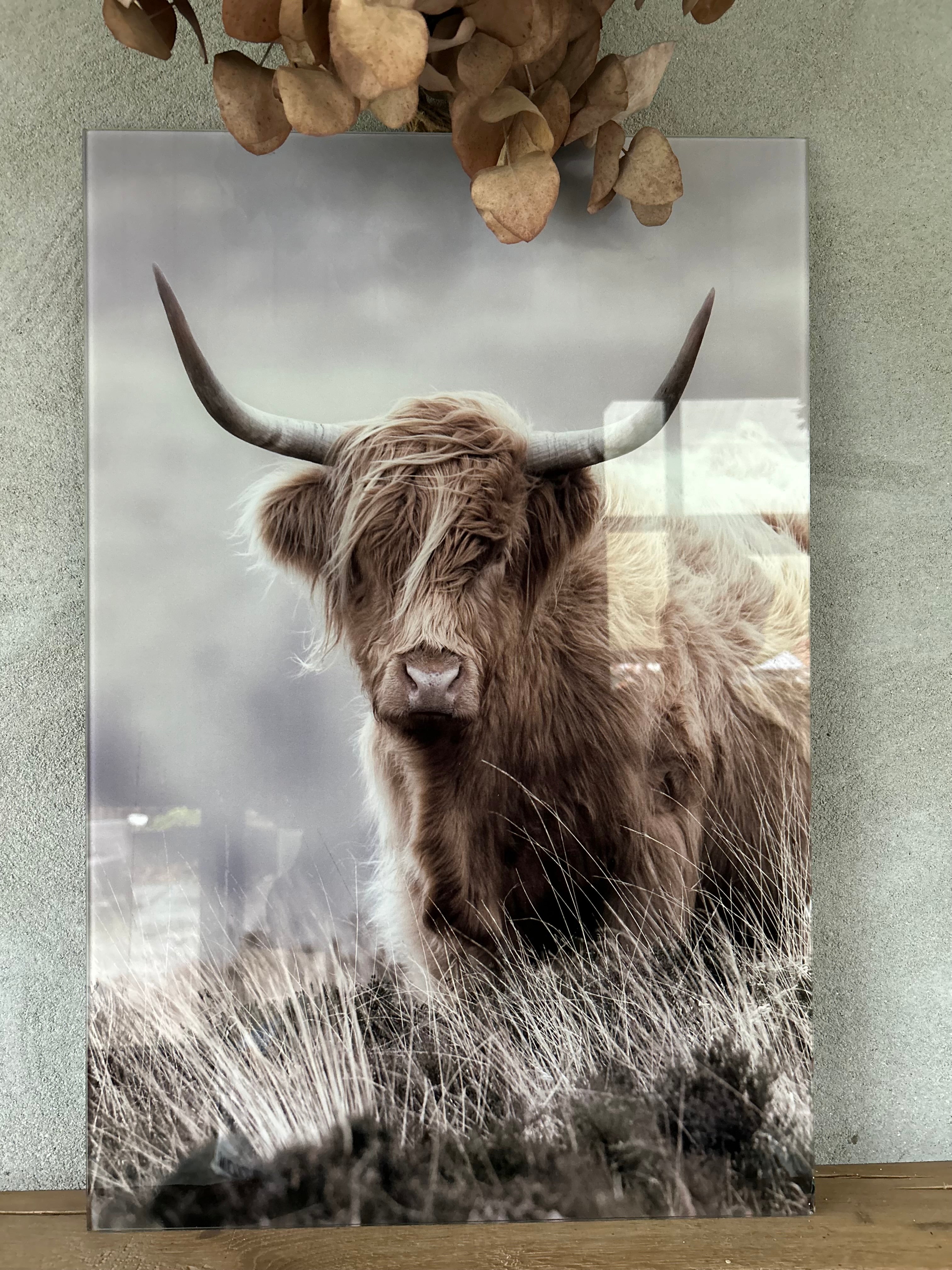 Glasschilderij schotse hooglander staand