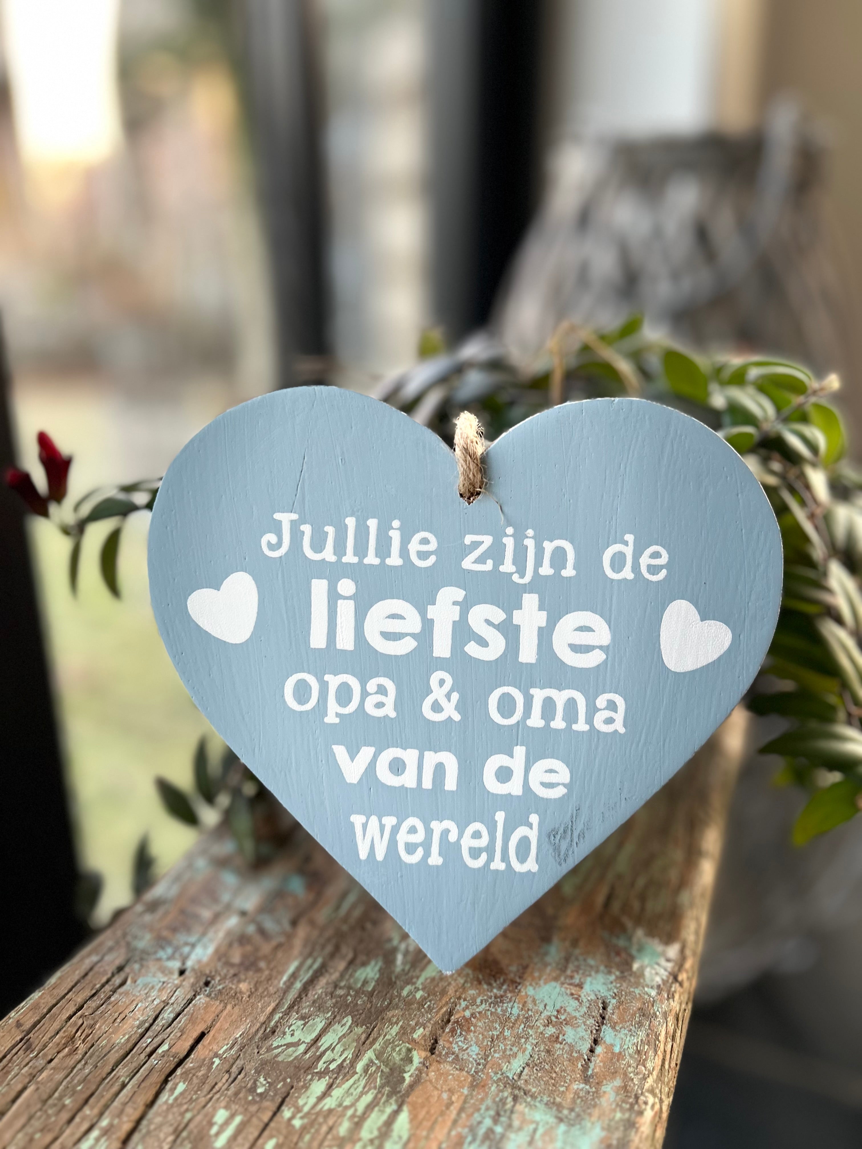 hart hangend 18x18cm liefste opa en oma van de wereld baby blauw