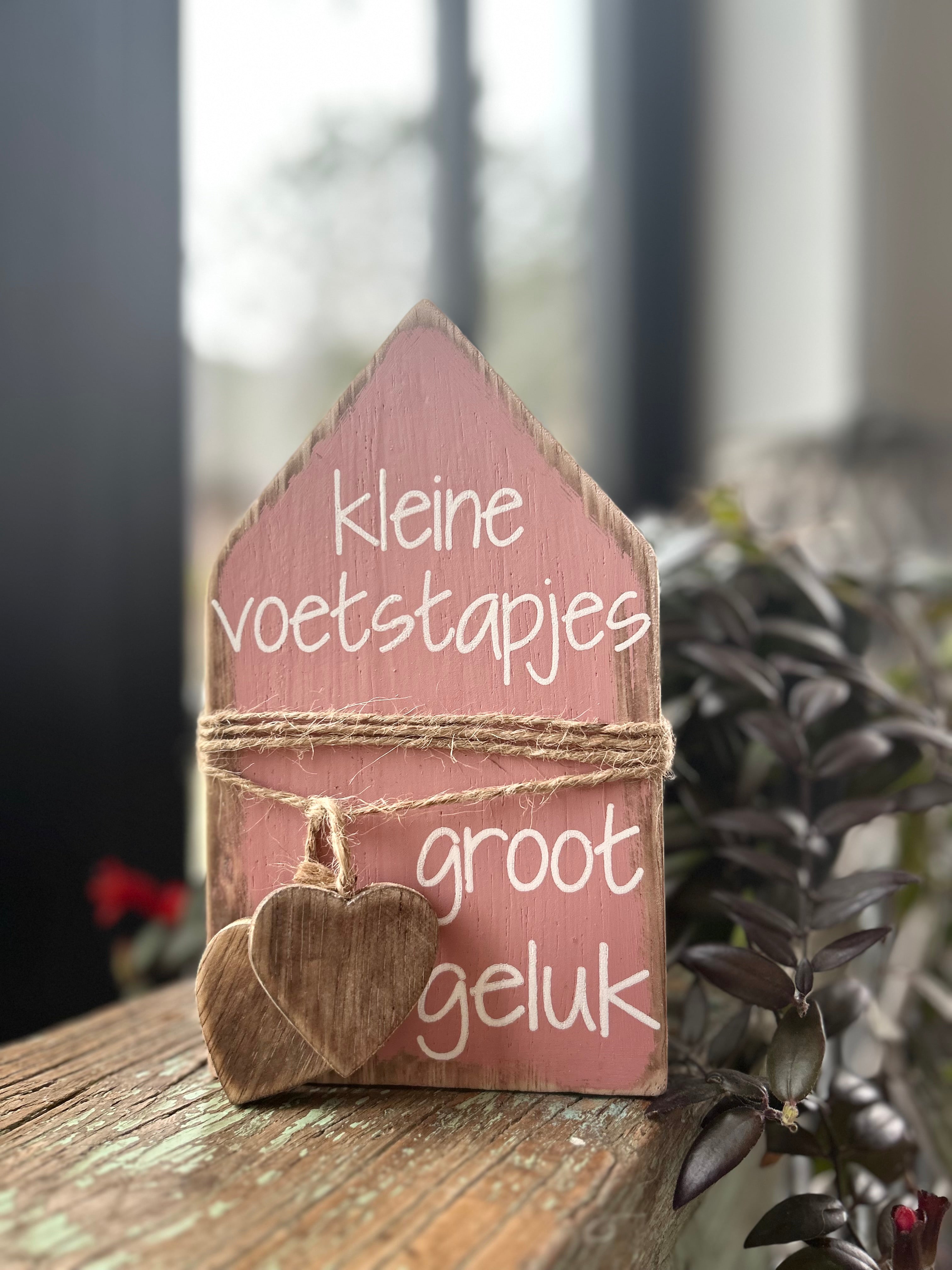 huisje touw hart 20x12.5cm kleine voetstapjes baby roze