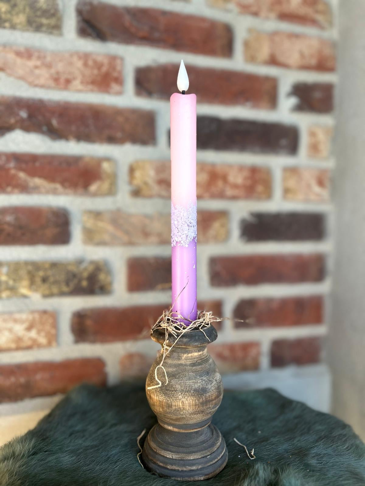 LED Dip Dye kaars Paars/Roze pastel/glitterLila