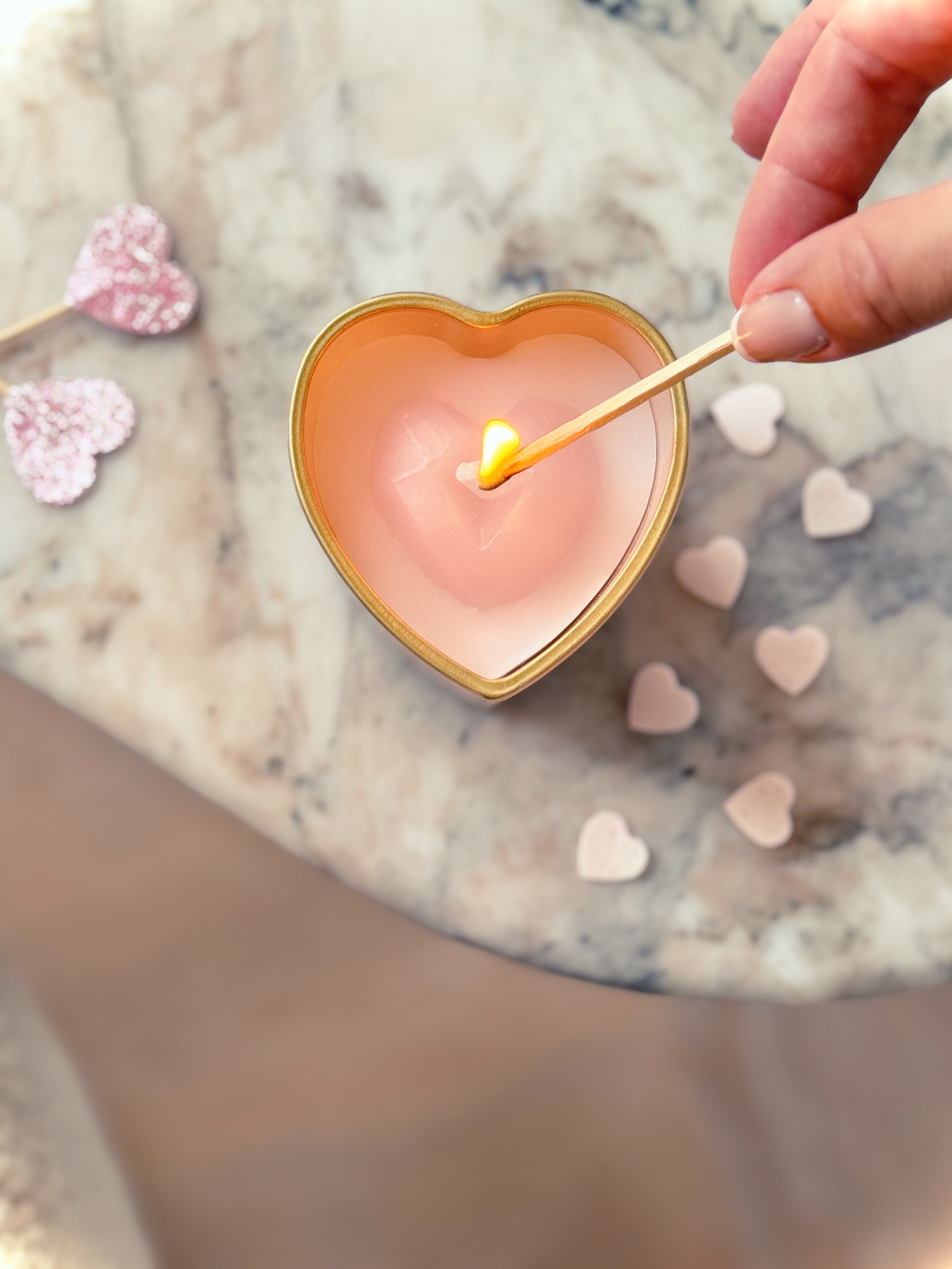 Een heerlijke geurkaars met Silky Tonka geur voor jouw 'Liefste'. Deze geurkaars komt in een stijlvol roze, hartvormig glas met een gouden rand. Op de mooie giftbox staat de tekst 'You make my heart melt'. Dat is toepasselijk aangezien je in de kaars een hart vindt dat zal smelten als de kaars brandt.