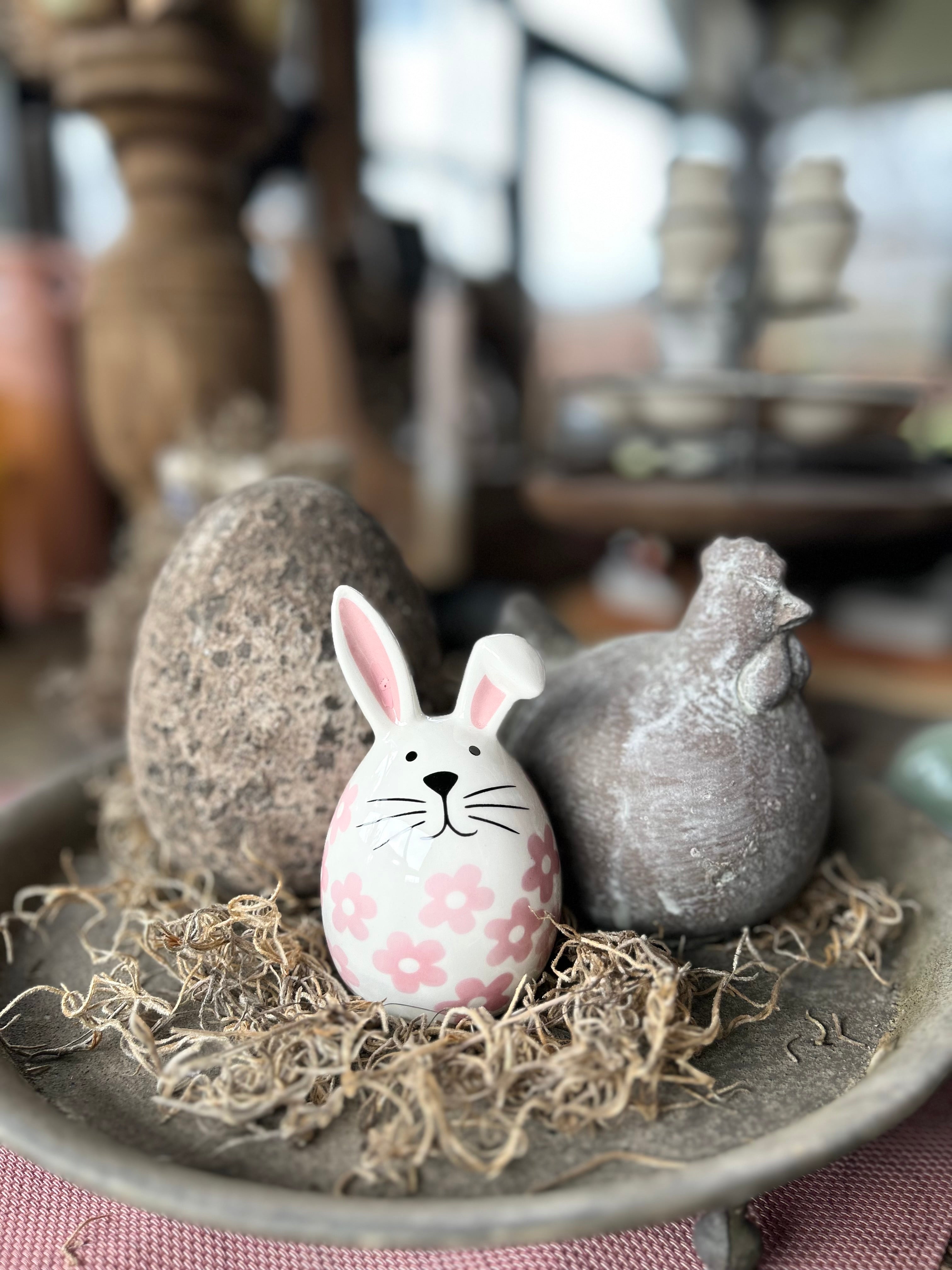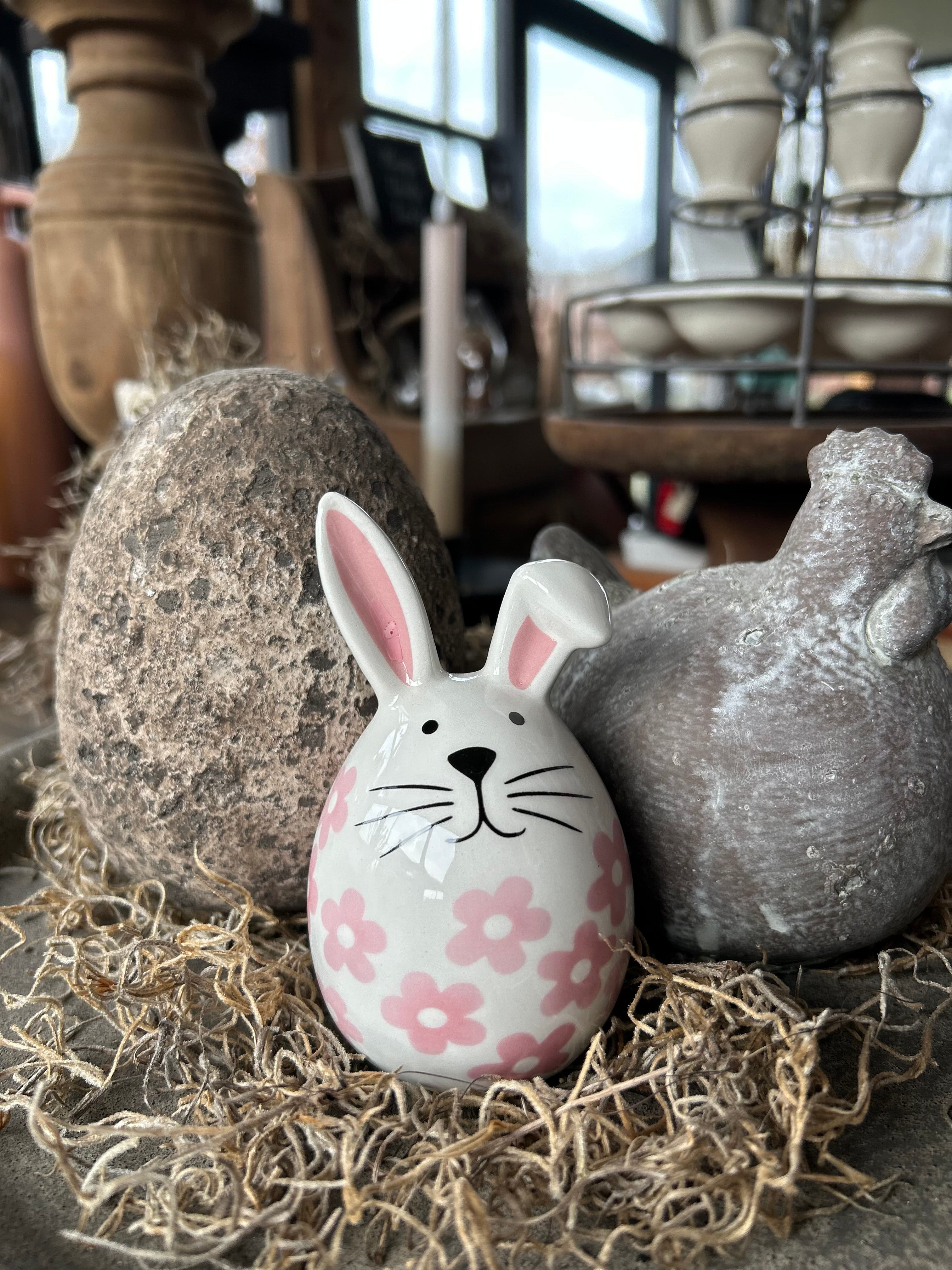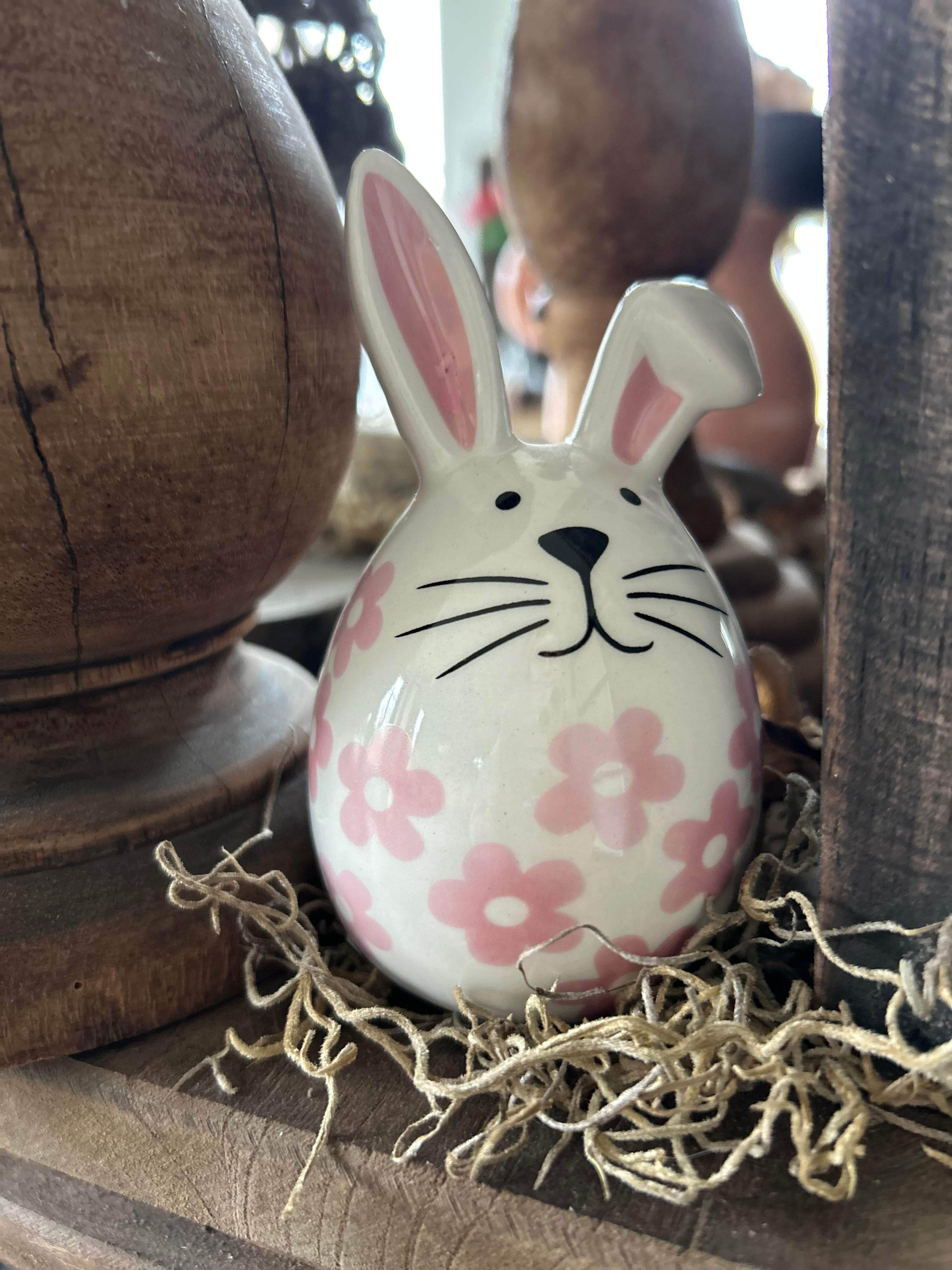 Porseleinen haasje met roze bloempjes