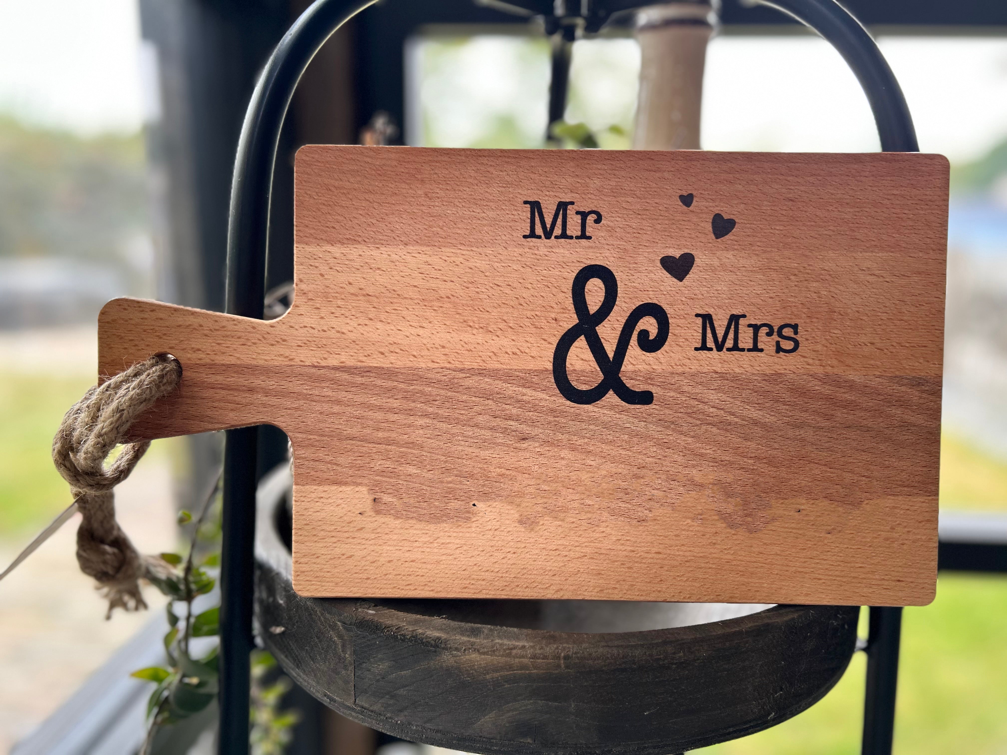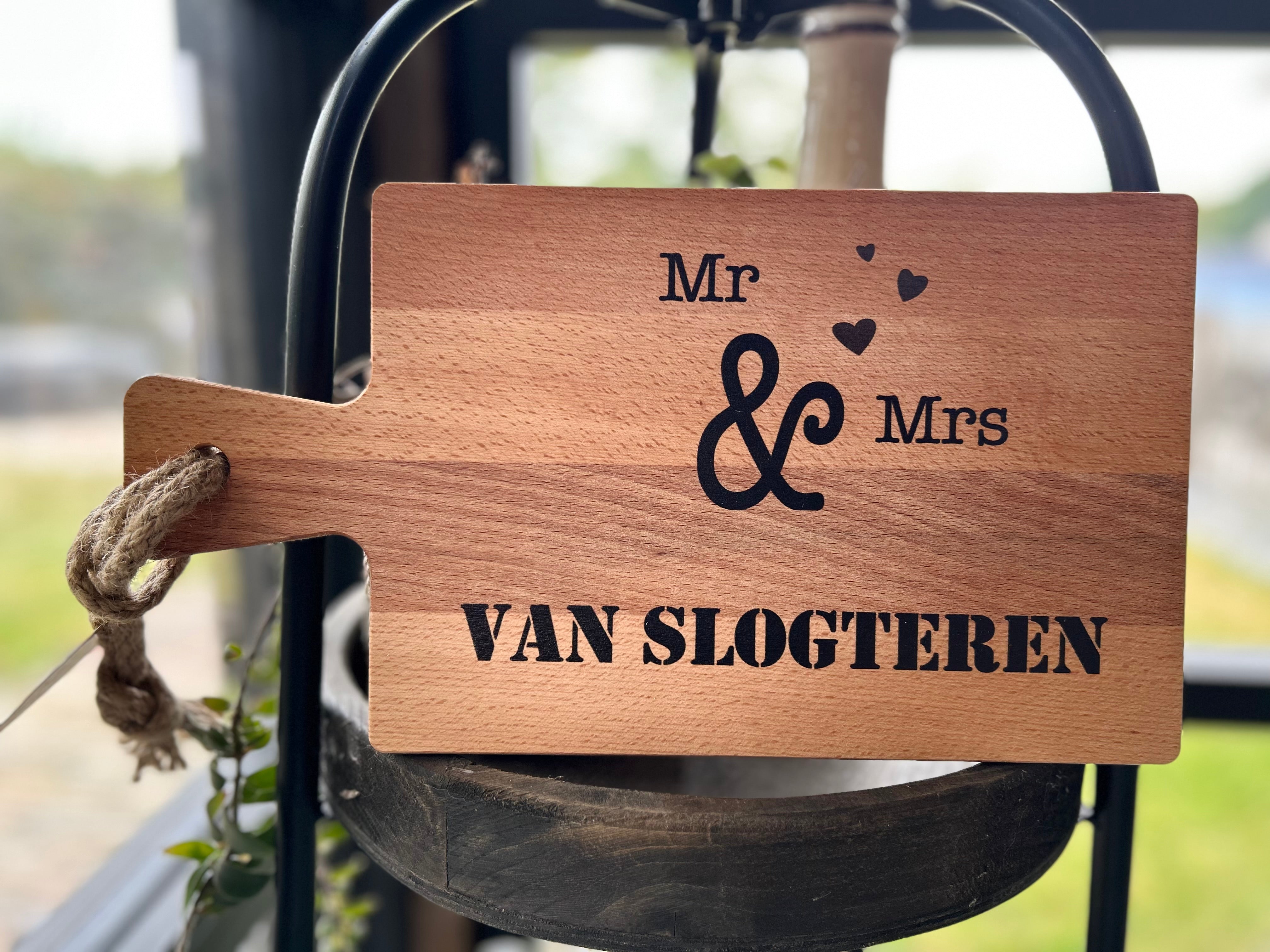 Serveerplankje 34,5 cm Mr en Mrs + eigen naam
