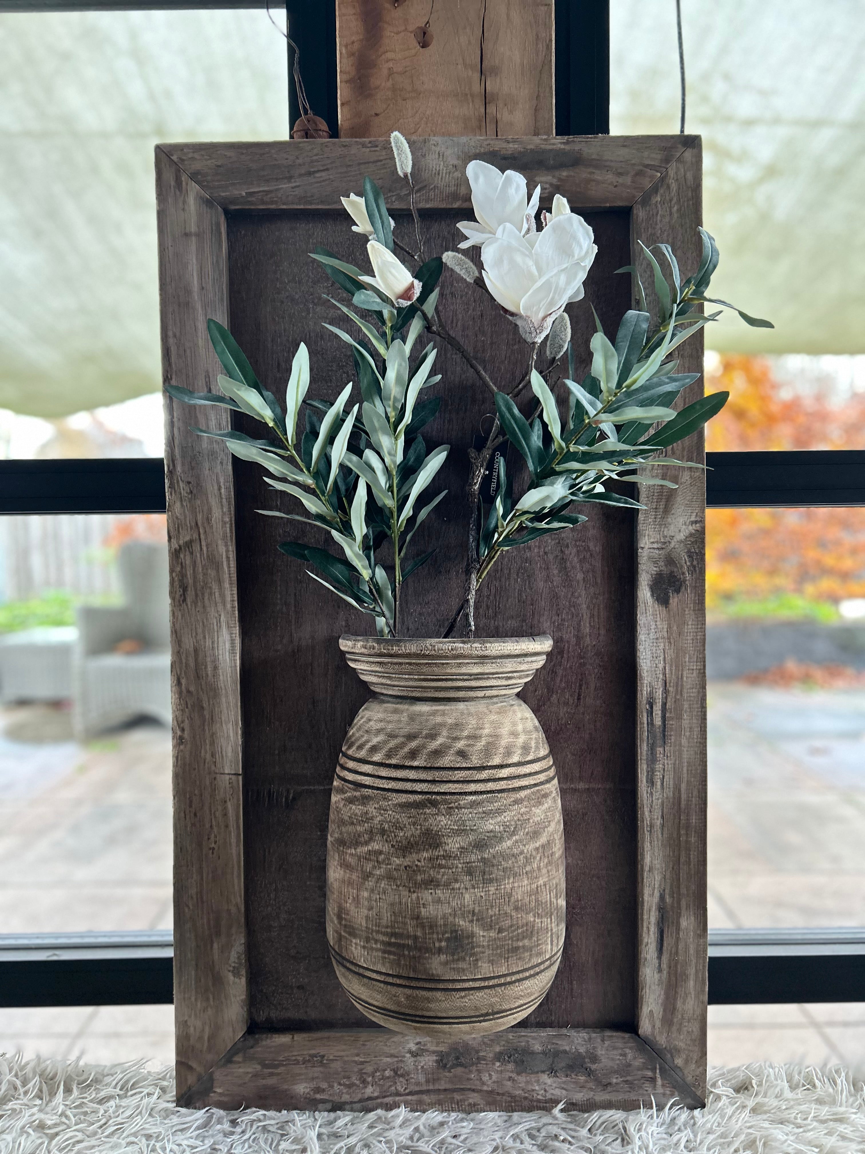 Wandpaneel met vaas en houten lijst - In 3 verschillende maten!