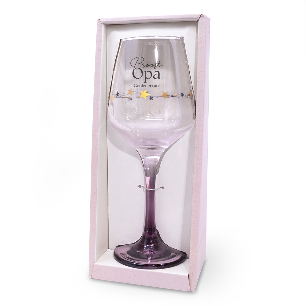 Wijnglas met de tekst proost opa